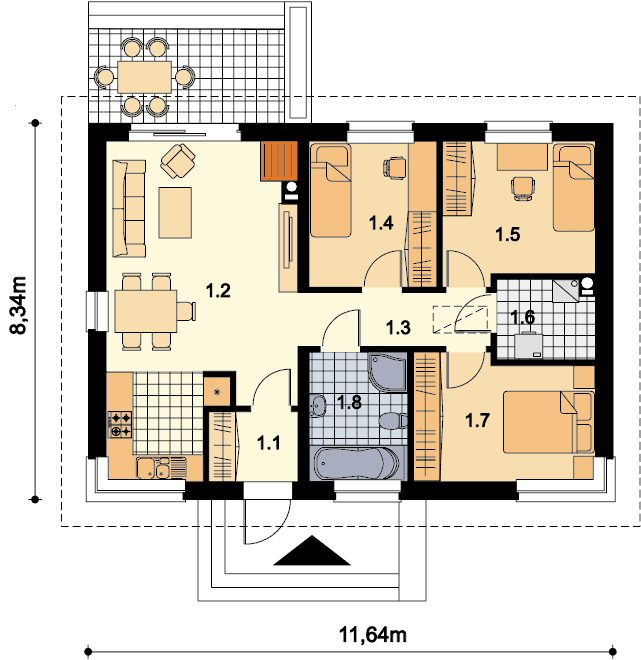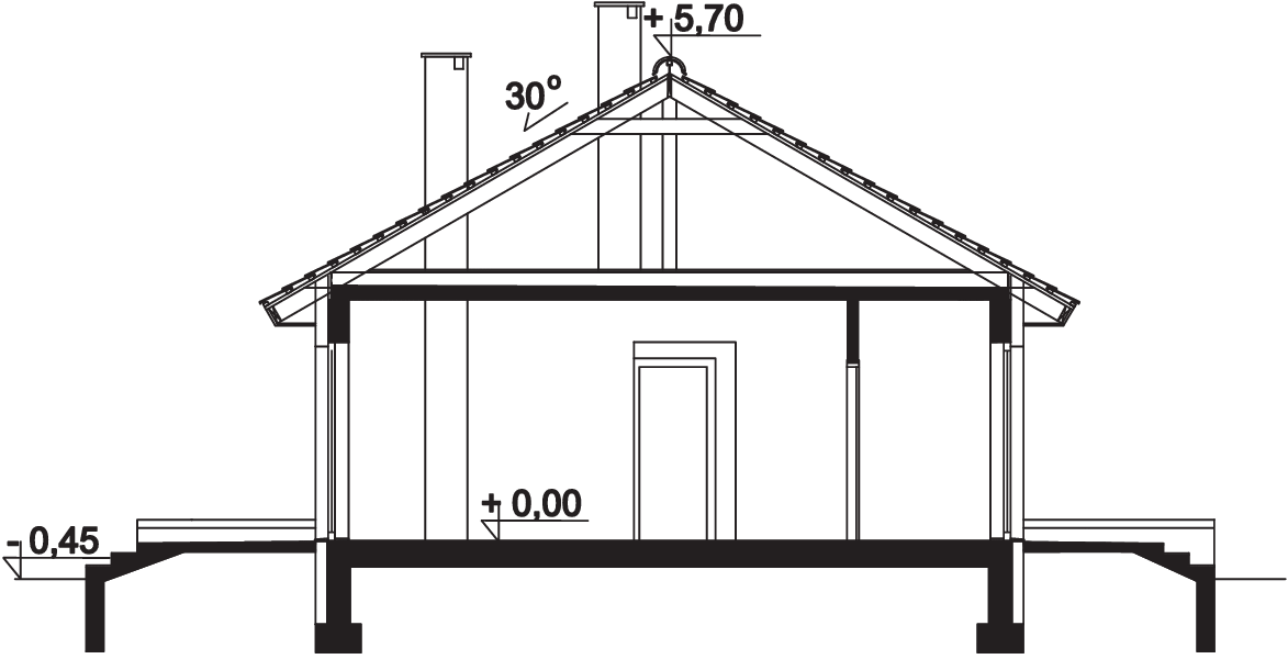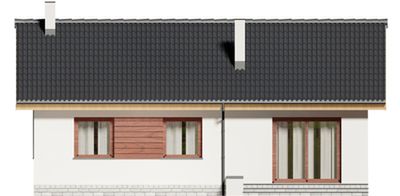 Graficzne opracowanie rzutów poglądowych widocznych na karcie projektu zostało wykonane przez Extradom.pl. Prezentowane przez Extradom.pl wizualizacje wykonane zostały przez autora projektu i należy poczytywać je jedynie za przykład i propozycję wykończenia, wizję architektoniczną autora projektu. Ostateczne wykończenie budynku może nastąpić na wiele sposobów. Szczegółowe rozwiązania zastosowane w oferowanej dokumentacji - w tym również ilość, lokalizacje i wygląd okien, drzwi, kominów - mogą w niewielkim stopniu różnić się od prezentowanej wizualizacji budynku.