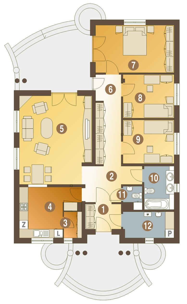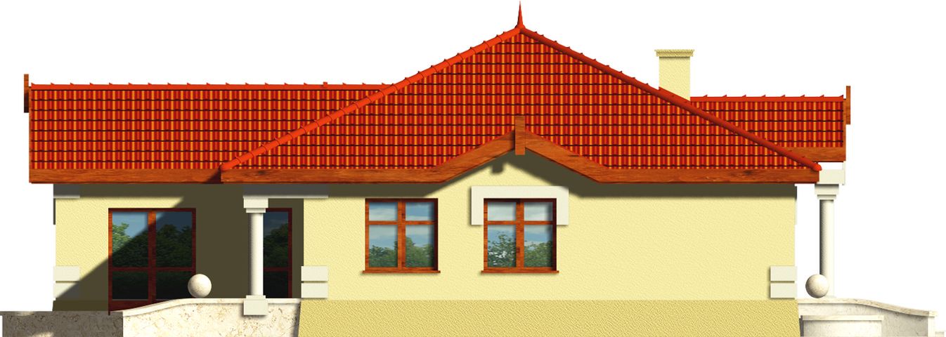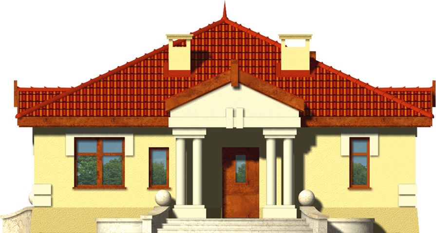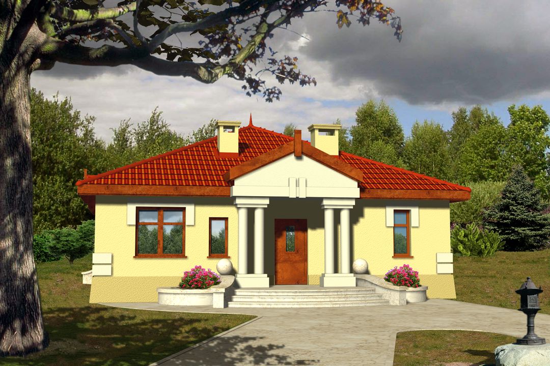 Graficzne opracowanie rzutów poglądowych widocznych na karcie projektu zostało wykonane przez Extradom.pl. Prezentowane przez Extradom.pl wizualizacje wykonane zostały przez autora projektu i należy poczytywać je jedynie za przykład i propozycję wykończenia, wizję architektoniczną autora projektu. Ostateczne wykończenie budynku może nastąpić na wiele sposobów. Szczegółowe rozwiązania zastosowane w oferowanej dokumentacji - w tym również ilość, lokalizacje i wygląd okien, drzwi, kominów - mogą w niewielkim stopniu różnić się od prezentowanej wizualizacji budynku.