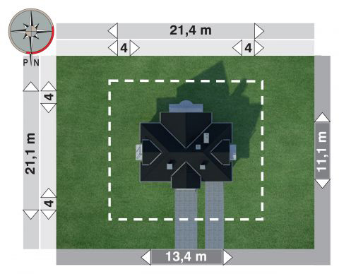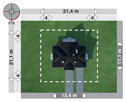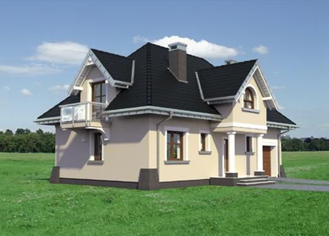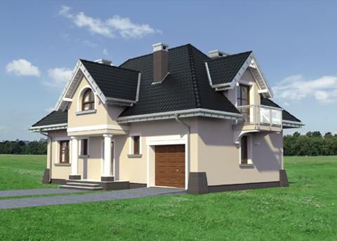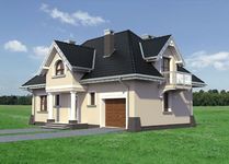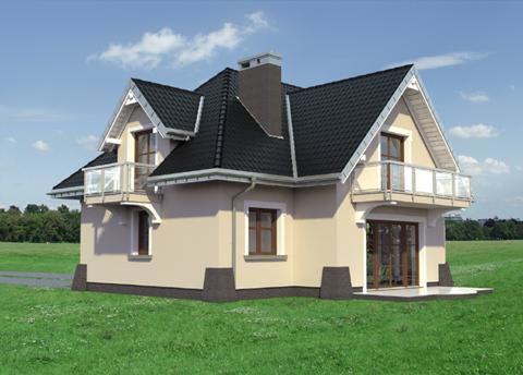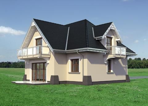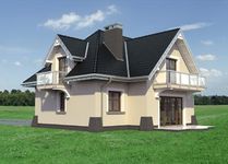 Graficzne opracowanie rzutów poglądowych widocznych na karcie projektu zostało wykonane przez Extradom.pl. Prezentowane przez Extradom.pl wizualizacje wykonane zostały przez autora projektu i należy poczytywać je jedynie za przykład i propozycję wykończenia, wizję architektoniczną autora projektu. Ostateczne wykończenie budynku może nastąpić na wiele sposobów. Szczegółowe rozwiązania zastosowane w oferowanej dokumentacji - w tym również ilość, lokalizacje i wygląd okien, drzwi, kominów - mogą w niewielkim stopniu różnić się od prezentowanej wizualizacji budynku.