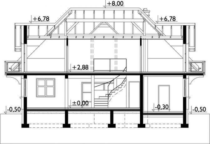 Technologia i konstrukcja: murowana – beton komórkowy. Ściany zewnętrzne: bloczki H+H gr. 24 cm na zaprawie cienkowarstwowej SICHER BAUTECHNIK + docieplenie styropian gr. 20cm. Ściany wewnętrzne: bloczki H+H gr. 24 cm i 12 cm na zaprawie cienkowarstwowej SICHER BAUTECHNIK. Strop: lekki strop panelowy Smart firmy KONBET. Konstrukcja dachu: drewniana, jętkowa. Rodzaj schodów: żelbetowe. Typ ogrzewania: kocioł na gaz. Aneks na paliwo stałe: dostępny (zapytaj o cenę). Pokrycie dachu: dachówka betonowa lub ceramiczna BRAAS. Elewacja: tynk akrylowy lub mozaikowy firmy SICHER BAUTECHNIK.