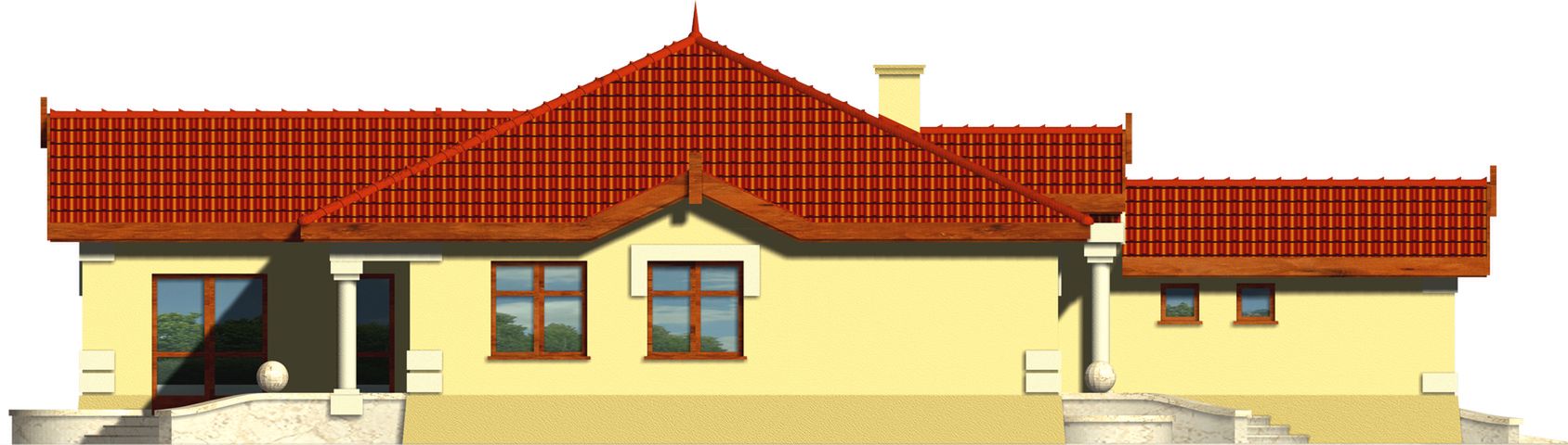 Graficzne opracowanie rzutów poglądowych widocznych na karcie projektu zostało wykonane przez Extradom.pl. Prezentowane przez Extradom.pl wizualizacje wykonane zostały przez autora projektu i należy poczytywać je jedynie za przykład i propozycję wykończenia, wizję architektoniczną autora projektu. Ostateczne wykończenie budynku może nastąpić na wiele sposobów. Szczegółowe rozwiązania zastosowane w oferowanej dokumentacji - w tym również ilość, lokalizacje i wygląd okien, drzwi, kominów - mogą w niewielkim stopniu różnić się od prezentowanej wizualizacji budynku.