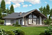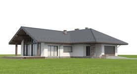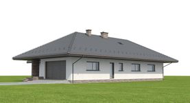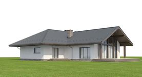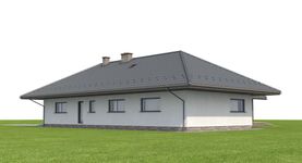Graficzne opracowanie rzutów poglądowych widocznych na karcie projektu zostało wykonane przez Extradom.pl. Prezentowane przez Extradom.pl wizualizacje wykonane zostały przez autora projektu i należy poczytywać je jedynie za przykład i propozycję wykończenia, wizję architektoniczną autora projektu. Ostateczne wykończenie budynku może nastąpić na wiele sposobów. Szczegółowe rozwiązania zastosowane w oferowanej dokumentacji - w tym również ilość, lokalizacje i wygląd okien, drzwi, kominów - mogą w niewielkim stopniu różnić się od prezentowanej wizualizacji budynku.