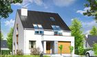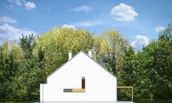 Graficzne opracowanie rzutów poglądowych widocznych na karcie projektu zostało wykonane przez Extradom.pl. Prezentowane przez Extradom.pl wizualizacje wykonane zostały przez autora projektu i należy poczytywać je jedynie za przykład i propozycję wykończenia, wizję architektoniczną autora projektu. Ostateczne wykończenie budynku może nastąpić na wiele sposobów. Szczegółowe rozwiązania zastosowane w oferowanej dokumentacji - w tym również ilość, lokalizacje i wygląd okien, drzwi, kominów - mogą w niewielkim stopniu różnić się od prezentowanej wizualizacji budynku.