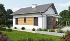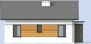 Graficzne opracowanie rzutów poglądowych widocznych na karcie projektu zostało wykonane przez Extradom.pl. Prezentowane przez Extradom.pl wizualizacje wykonane zostały przez autora projektu i należy poczytywać je jedynie za przykład i propozycję wykończenia, wizję architektoniczną autora projektu. Ostateczne wykończenie budynku może nastąpić na wiele sposobów. Szczegółowe rozwiązania zastosowane w oferowanej dokumentacji - w tym również ilość, lokalizacje i wygląd okien, drzwi, kominów - mogą w niewielkim stopniu różnić się od prezentowanej wizualizacji budynku.