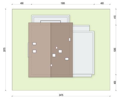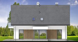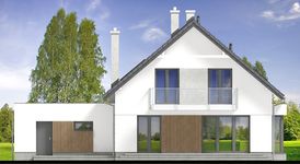 Graficzne opracowanie rzutów poglądowych widocznych na karcie projektu zostało wykonane przez Extradom.pl. Prezentowane przez Extradom.pl wizualizacje wykonane zostały przez autora projektu i należy poczytywać je jedynie za przykład i propozycję wykończenia, wizję architektoniczną autora projektu. Ostateczne wykończenie budynku może nastąpić na wiele sposobów. Szczegółowe rozwiązania zastosowane w oferowanej dokumentacji - w tym również ilość, lokalizacje i wygląd okien, drzwi, kominów - mogą w niewielkim stopniu różnić się od prezentowanej wizualizacji budynku.
