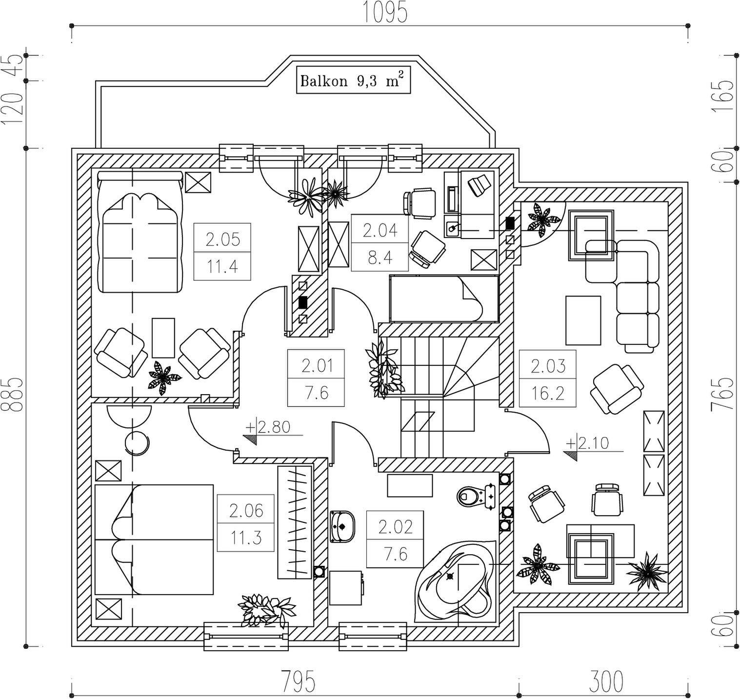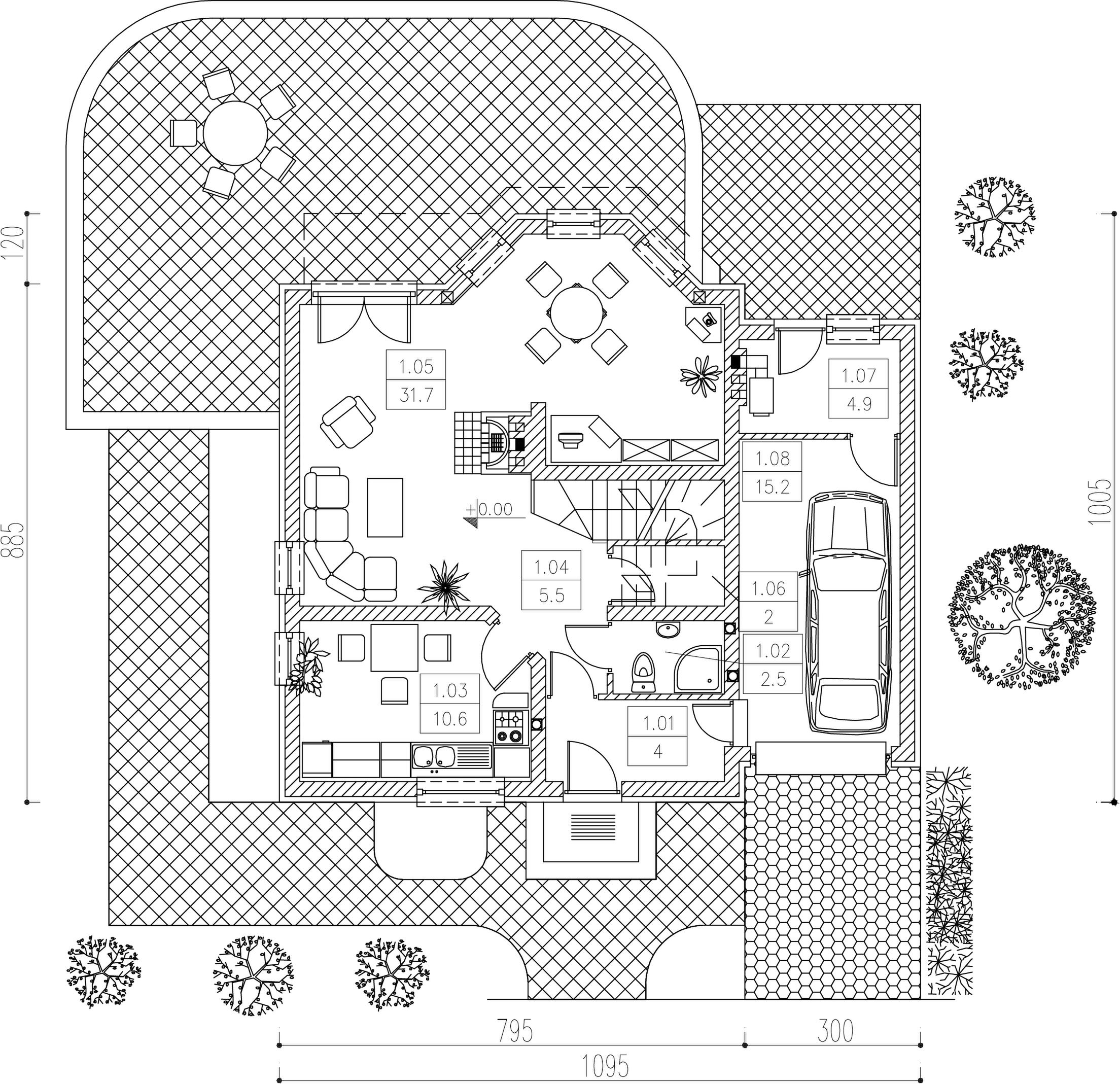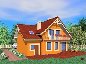 Graficzne opracowanie rzutów poglądowych widocznych na karcie projektu zostało wykonane przez Extradom.pl. Prezentowane przez Extradom.pl wizualizacje wykonane zostały przez autora projektu i należy poczytywać je jedynie za przykład i propozycję wykończenia, wizję architektoniczną autora projektu. Ostateczne wykończenie budynku może nastąpić na wiele sposobów. Szczegółowe rozwiązania zastosowane w oferowanej dokumentacji - w tym również ilość, lokalizacje i wygląd okien, drzwi, kominów - mogą w niewielkim stopniu różnić się od prezentowanej wizualizacji budynku.