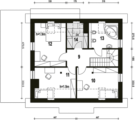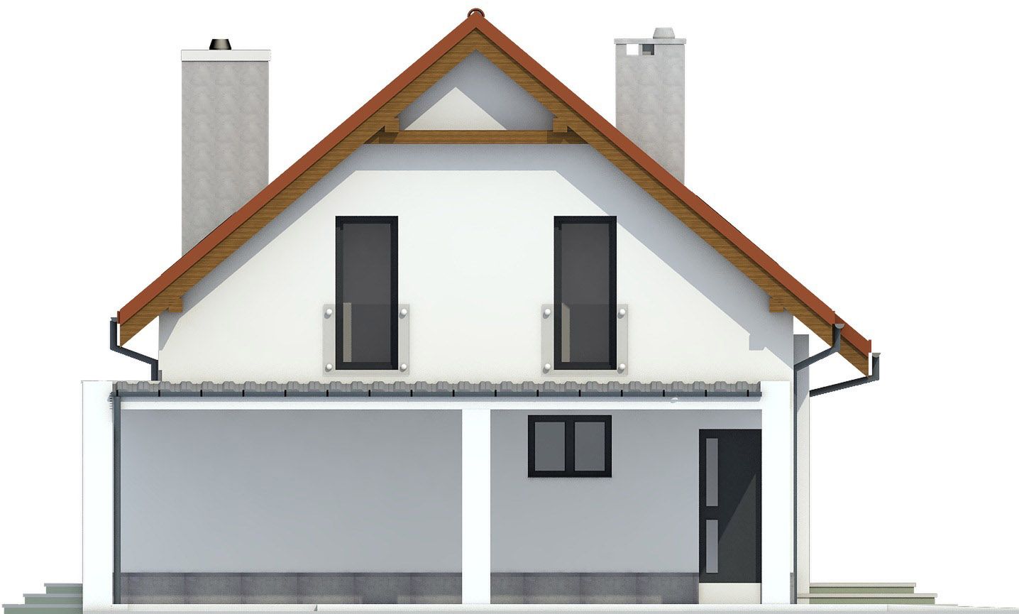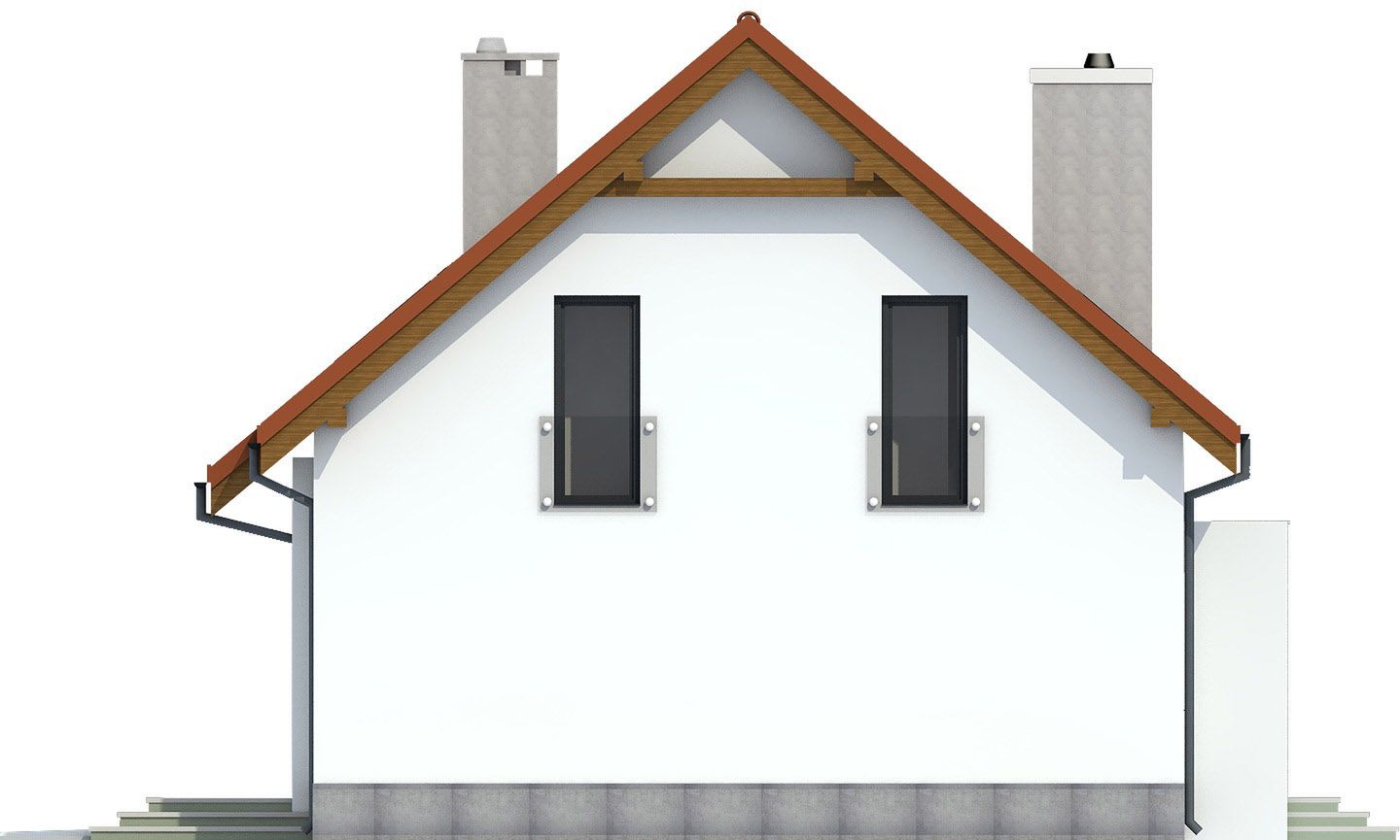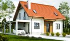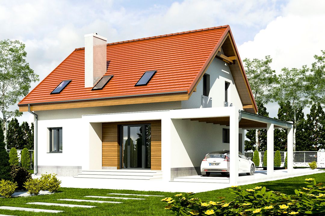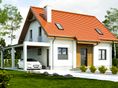 Graficzne opracowanie rzutów poglądowych widocznych na karcie projektu zostało wykonane przez Extradom.pl. Prezentowane przez Extradom.pl wizualizacje wykonane zostały przez autora projektu i należy poczytywać je jedynie za przykład i propozycję wykończenia, wizję architektoniczną autora projektu. Ostateczne wykończenie budynku może nastąpić na wiele sposobów. Szczegółowe rozwiązania zastosowane w oferowanej dokumentacji - w tym również ilość, lokalizacje i wygląd okien, drzwi, kominów - mogą w niewielkim stopniu różnić się od prezentowanej wizualizacji budynku.