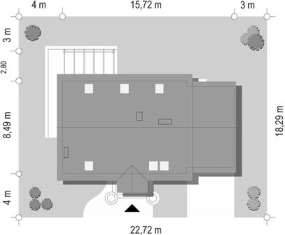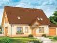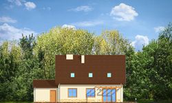 Graficzne opracowanie rzutów poglądowych widocznych na karcie projektu zostało wykonane przez Extradom.pl. Prezentowane przez Extradom.pl wizualizacje wykonane zostały przez autora projektu i należy poczytywać je jedynie za przykład i propozycję wykończenia, wizję architektoniczną autora projektu. Ostateczne wykończenie budynku może nastąpić na wiele sposobów. Szczegółowe rozwiązania zastosowane w oferowanej dokumentacji - w tym również ilość, lokalizacje i wygląd okien, drzwi, kominów - mogą w niewielkim stopniu różnić się od prezentowanej wizualizacji budynku.