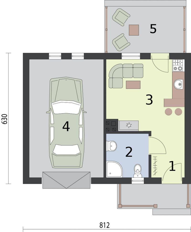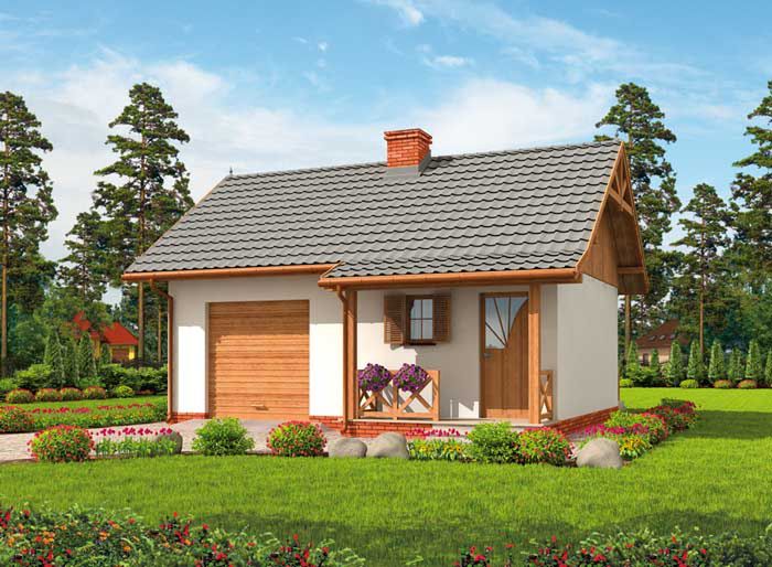 Technologia tradycyjna: - powierzchnia zabudowy - 51,15m2 - powierzchnia użytkowa parteru -20,81m2 garażu i tarasu -28,82m2 - powierzchnia całkowita - 66,04m2 - kubatura części przekrytych i zamkniętych ze wszystkich stron -242,95m3- kabatura części przekrytych i niezamkniętych ze wszystkich stron -13,05m3- kubatura razem -256,00m3 - ściany zewnętrzne murowane grubości 30 cm - ściany wewnętrzne działowe gr. 12 cm - wszystkie ściany wykonane z pustaków ceramicznych "POROTHERM" - konstrukcja więźby dachowej drewniana w układzie krokwiowo-jętkowym z grzędą - pokrycie dachówka ceramiczna - projekt posiada kominek