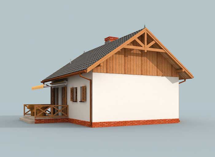 Graficzne opracowanie rzutów poglądowych widocznych na karcie projektu zostało wykonane przez Extradom.pl. Prezentowane przez Extradom.pl wizualizacje wykonane zostały przez autora projektu i należy poczytywać je jedynie za przykład i propozycję wykończenia, wizję architektoniczną autora projektu. Ostateczne wykończenie budynku może nastąpić na wiele sposobów. Szczegółowe rozwiązania zastosowane w oferowanej dokumentacji - w tym również ilość, lokalizacje i wygląd okien, drzwi, kominów - mogą w niewielkim stopniu różnić się od prezentowanej wizualizacji budynku.