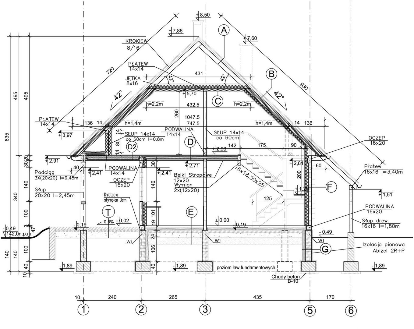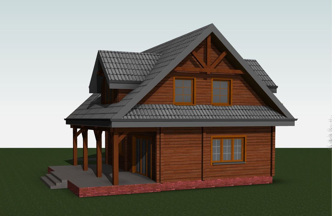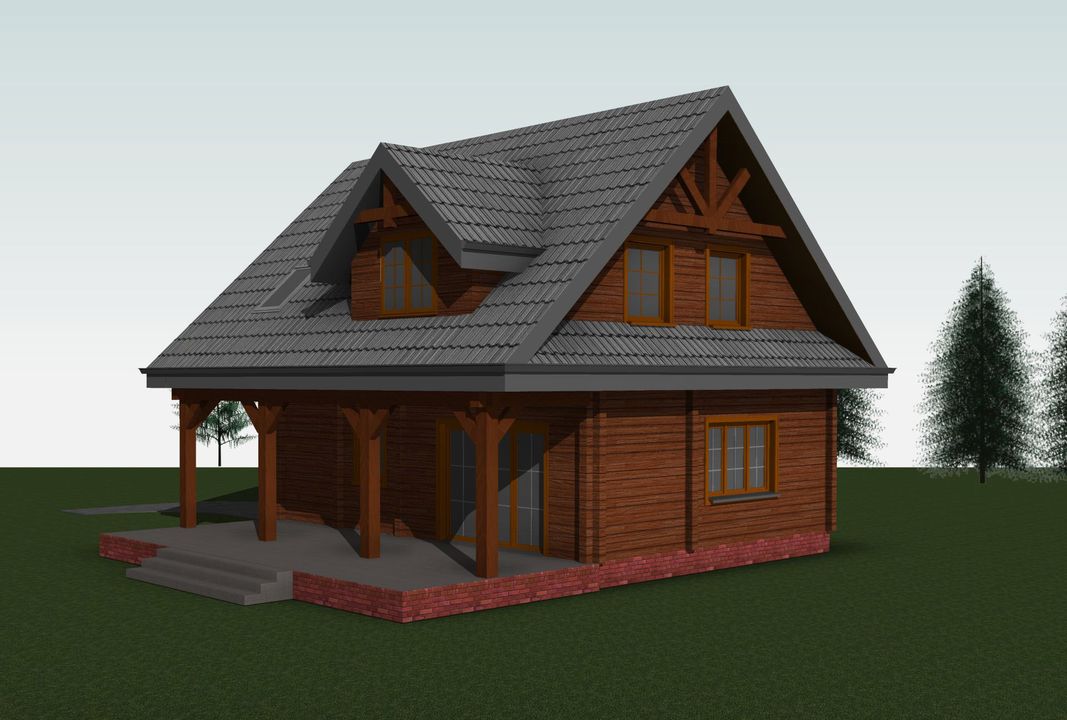 Ściany zewnętrzne: bal gr. 12cm ocieplone gr.10cm. Ściany wewnętrzne: bal 12cm. Strop: drewniany. Konstrukcja dachu: krokwiowo – jętkowa. Dach: blachodachówka. Ogrzewanie: kominkowe.