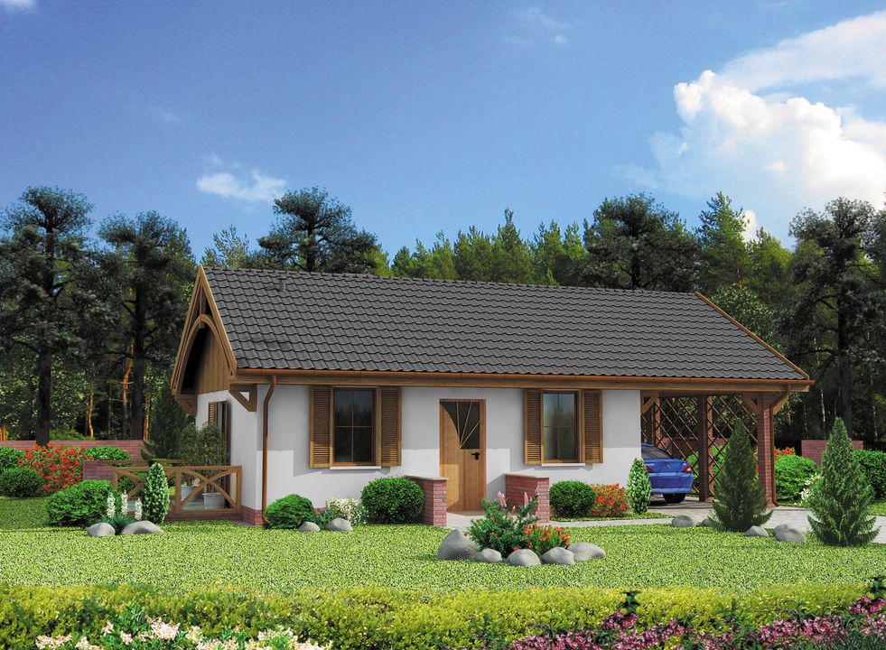 Graficzne opracowanie rzutów poglądowych widocznych na karcie projektu zostało wykonane przez Extradom.pl. Prezentowane przez Extradom.pl wizualizacje wykonane zostały przez autora projektu i należy poczytywać je jedynie za przykład i propozycję wykończenia, wizję architektoniczną autora projektu. Ostateczne wykończenie budynku może nastąpić na wiele sposobów. Szczegółowe rozwiązania zastosowane w oferowanej dokumentacji - w tym również ilość, lokalizacje i wygląd okien, drzwi, kominów - mogą w niewielkim stopniu różnić się od prezentowanej wizualizacji budynku.