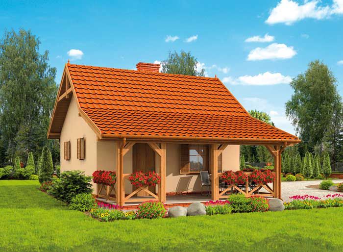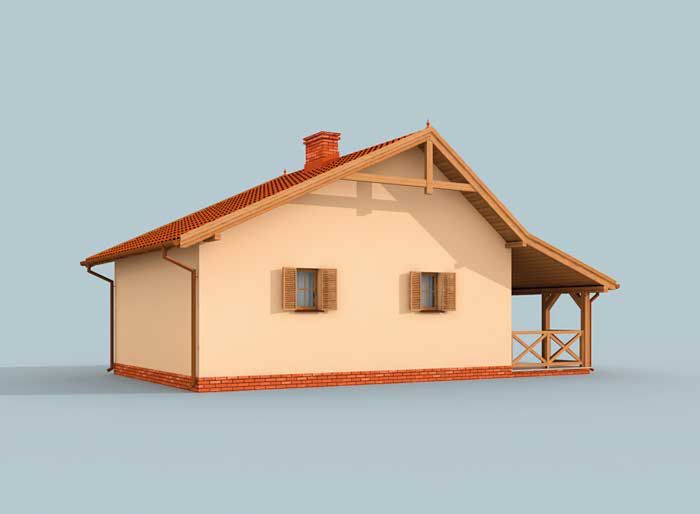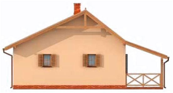 Technologia tradycyjna: - powierzchnia zabudowy - 51,15m2 - powierzchnia użytkowa parteru -39,84m2- powierzchnia użytkowa werandy -15,25m2- powierzchnia całkowita - 68,16m2 - kubatura - 288,50m3 - ściany zewnętrzne murowane grubości 30 cm - ściany wewnętrzne działowe gr. 12 cm - wszystkie ściany wykonane z pustaków ceramicznych "POROTHERM" - konstrukcja więźby dachowej drewniana w układzie krokwiowo-jętkowym - pokrycie dachówka ceramiczna - projekt posiada kominek