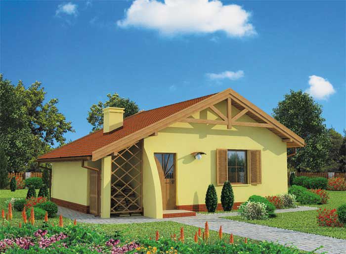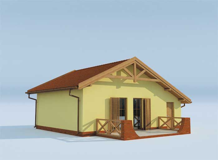 Ściany zewnętrzne murowane gr. 30 cm. Ściany wewnętrzne nośne gr. 25 cm. Ściany wewnętrzne działowe gr. 12 cm. Wszystkie ściany wykonane z pustaków ceramicznych. Sufit podwieszany z płyt GK na ruszcie stalowym. Konstrukcja więźby dachowej drewniana w układzie płatwiowo-kleszczowym, pokrycie dachówka ceramiczna. Instalacja grzewcza: kominek. Instalacja grzewcza w wersji całorocznej: kominek z płaszczem wodnym. Istnieje możliwość adaptacji obiektu na budynek całoroczny - w przypadku wersji całorocznej docieplenie warstwą styropianu gr. 10 cm.