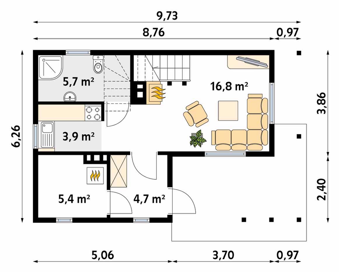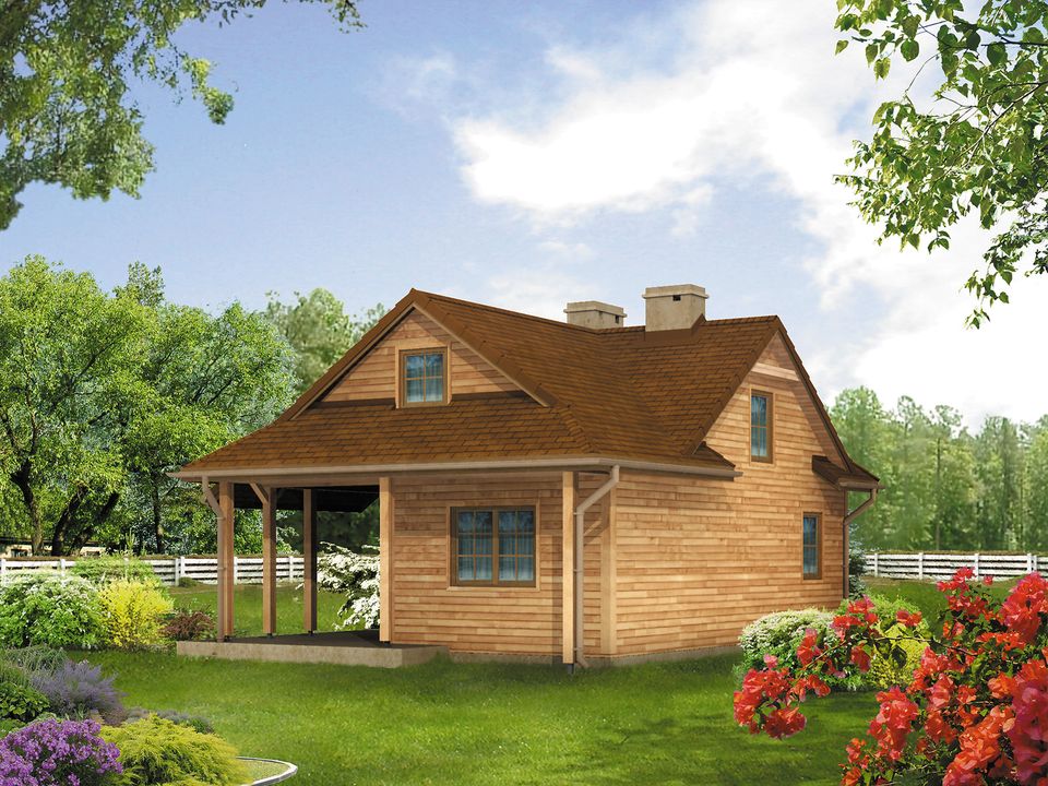 Graficzne opracowanie rzutów poglądowych widocznych na karcie projektu zostało wykonane przez Extradom.pl. Prezentowane przez Extradom.pl wizualizacje wykonane zostały przez autora projektu i należy poczytywać je jedynie za przykład i propozycję wykończenia, wizję architektoniczną autora projektu. Ostateczne wykończenie budynku może nastąpić na wiele sposobów. Szczegółowe rozwiązania zastosowane w oferowanej dokumentacji - w tym również ilość, lokalizacje i wygląd okien, drzwi, kominów - mogą w niewielkim stopniu różnić się od prezentowanej wizualizacji budynku.
