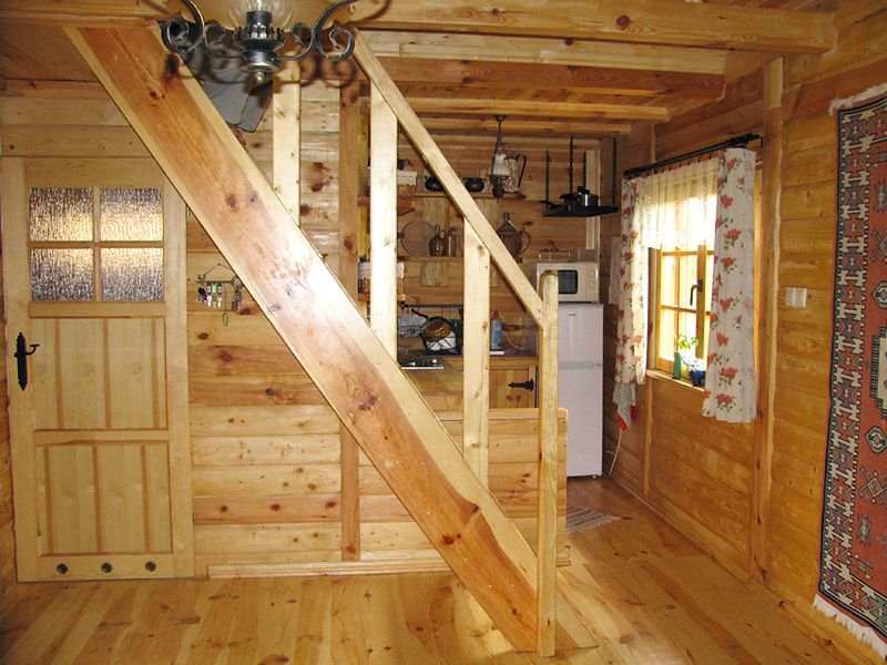 Ściany: z bali drewnianych. Stropy: drewniane. Dach: pokrycie typu lekkiego, kąt nachylenia 45°. Ogrzewanie:.