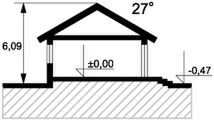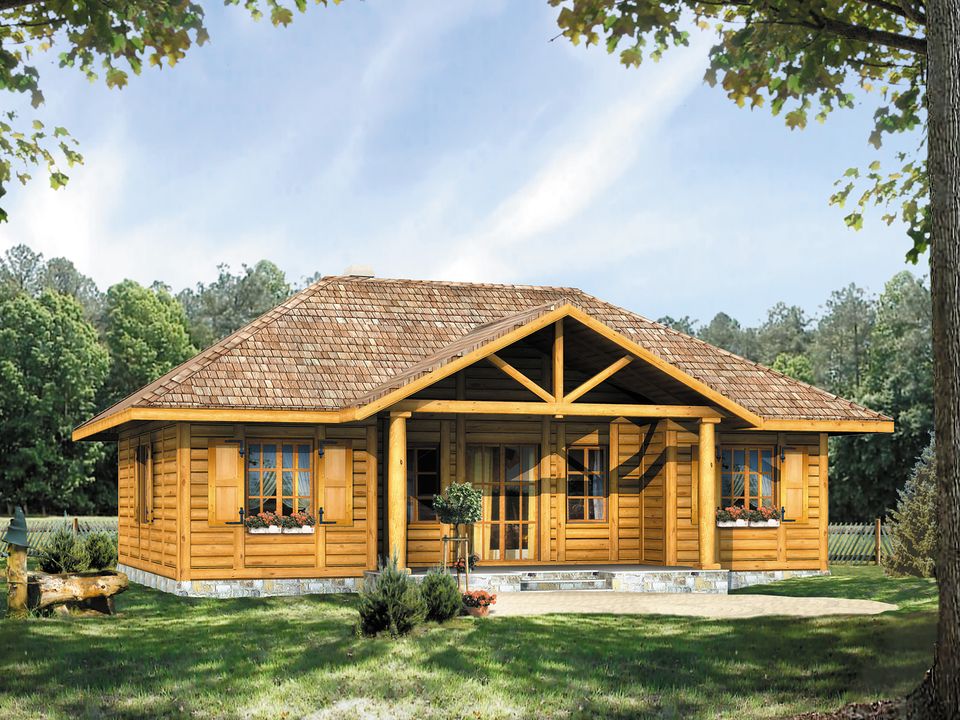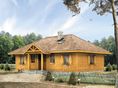Ściany: z bali drewnianych. Stropy: belki drewniane. Dach: dachówka, kąt nachylenia 30°. Ogrzewanie: elektryczne.