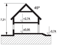 Budynek wyposażony jest w instalację wodnokanalizacyjną, elektryczną, ogrzewanie elektryczne wzgl. ogrzewanie kominkowe.W projekcie przyjęto dach o spadku 45 stopni i wys. kalenicy 7,21 m. Do realizacji: - w wersji z bali drewnianych pełnych.