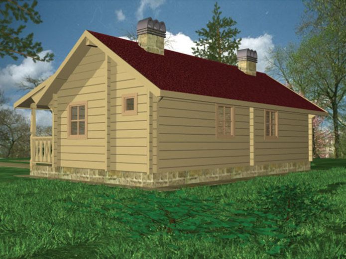 Dach : blachodachówka profilowana na kształt gontu z posypką ceramiczną. Elewacje belki drewniane. Ściany z bali drewnianych.
