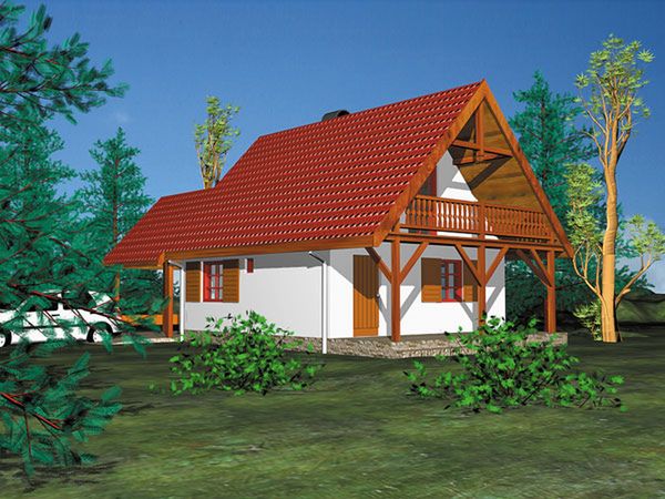 Ogrzewanie elektryczne i centralnie ustawiony kominek ogrzeje doskonale całość. Kąt nachylenia połaci 45 stopni. Wysokość w kalenicy 6,0m.