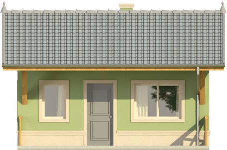 Domek 1 wybudować można naprawdę niewielkim kosztem. Ściany zaprojektowano z bloczków z betonu komórkowego z dociepleniem. Projekt nie przewiduje stropu nad parterem (sufit podwieszony do elementów więźby dachowej), co dodatkowo redukuje koszt budowy. Więźba jest w konstrukcji drewnianej, z pokryciem dachówką ceramiczną lub betonową. Fasady wykończono tynkiem.