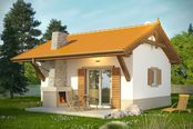 Ściany przewidziano z gazobetonu z warstwą styropianu, dach wsparty jest na drewnianej konstrukcji i przekryty dachówką ceramiczną lub betonową. Sufit podwieszony do elementów więźby dachowej. Ściany są w całości otynkowane, zaproponowano drewniane okiennice oraz komin jest z cegły pełnej.