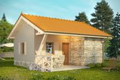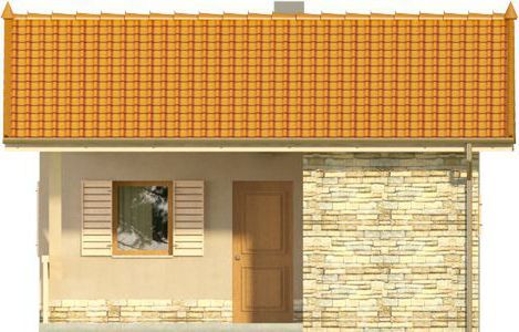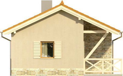 Zaprojektowane ściany wykonać można z gazobetonu z dociepleniem. Zaproponowane materiały wykończeniowe to tynk i płytka z kamienia łamanego. Okiennice są drewniane, komin wymurowany z cegły pełnej. Drewniana konstrukcja dachu kryta jest dachówkami ceramicznymi, cementowymi lub dowolnym innym materiałem. Sufit podwieszony do elementów więźby dachowej. Dostępne jest także odbicie lustrzane dla tego projektu.