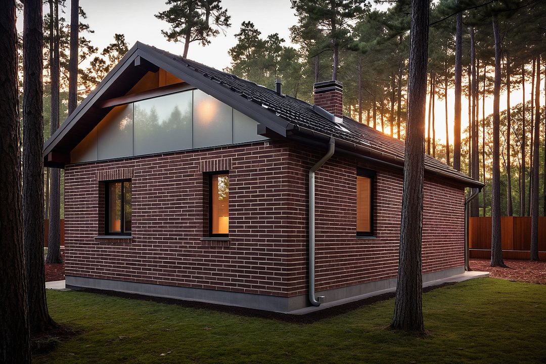 Budynek wykonany w technologii tradycyjnej. Ściany warstwowe grubości 34cm, murowane z bloczków z betonu komórkowego grubości 24cm, ocieplone styropianem grubości 10cm. Ściany wewnętrzne z bloczków z betonu komórkowego grubości 12cm. Komin z cegły ceramicznej pełnej. Więźba dachowa dwuspadowa, drewniana, pokryta blachodachówką.