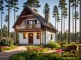 Graficzne opracowanie rzutów poglądowych widocznych na karcie projektu zostało wykonane przez Extradom.pl. Prezentowane przez Extradom.pl wizualizacje wykonane zostały przez autora projektu i należy poczytywać je jedynie za przykład i propozycję wykończenia, wizję architektoniczną autora projektu. Ostateczne wykończenie budynku może nastąpić na wiele sposobów. Szczegółowe rozwiązania zastosowane w oferowanej dokumentacji - w tym również ilość, lokalizacje i wygląd okien, drzwi, kominów - mogą w niewielkim stopniu różnić się od prezentowanej wizualizacji budynku.