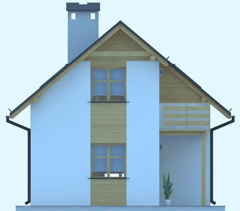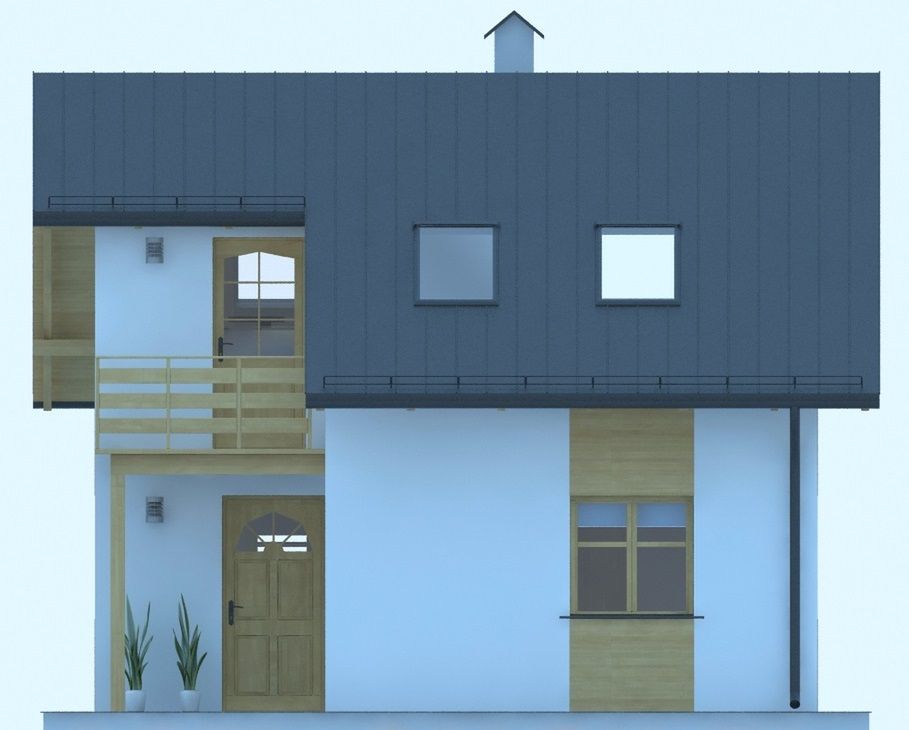 Graficzne opracowanie rzutów poglądowych widocznych na karcie projektu zostało wykonane przez Extradom.pl. Prezentowane przez Extradom.pl wizualizacje wykonane zostały przez autora projektu i należy poczytywać je jedynie za przykład i propozycję wykończenia, wizję architektoniczną autora projektu. Ostateczne wykończenie budynku może nastąpić na wiele sposobów. Szczegółowe rozwiązania zastosowane w oferowanej dokumentacji - w tym również ilość, lokalizacje i wygląd okien, drzwi, kominów - mogą w niewielkim stopniu różnić się od prezentowanej wizualizacji budynku.