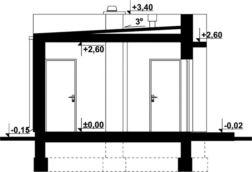 Budynek wykonany w technologii tradycyjnej. Ściany warstwowe grubości 34cm, murowane z bloczków z betonu komórkowego grubości 24cm, ocieplone styropianem grubości 10cm. Ściany wewnętrzne z betonu komórkowego grubości 12cm. Komin systemowy firmy SCHIEDEL. Więźba dachowa jednospadowa, drewniana, pokryta blachą trapezową.