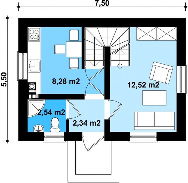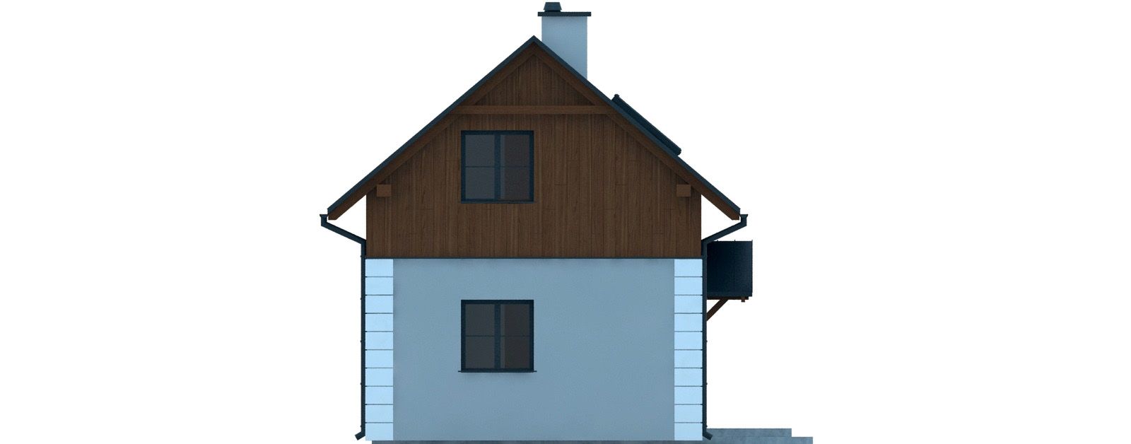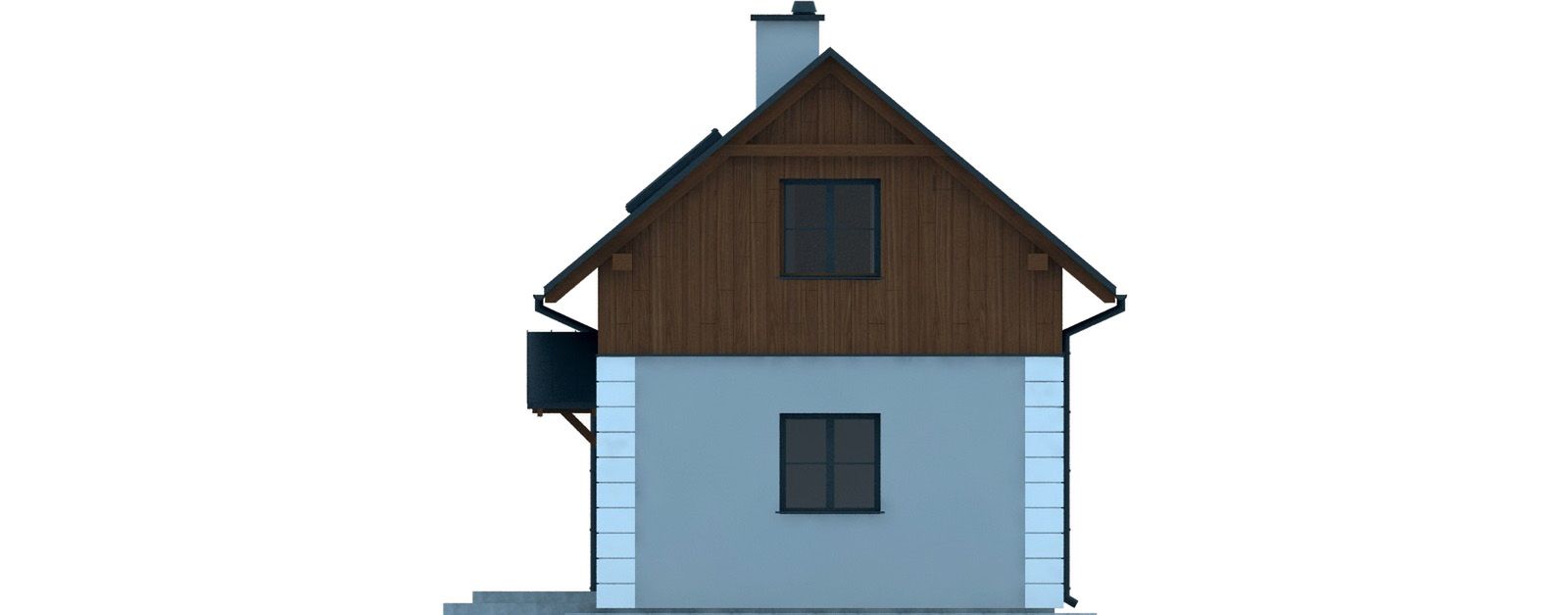 Graficzne opracowanie rzutów poglądowych widocznych na karcie projektu zostało wykonane przez Extradom.pl. Prezentowane przez Extradom.pl wizualizacje wykonane zostały przez autora projektu i należy poczytywać je jedynie za przykład i propozycję wykończenia, wizję architektoniczną autora projektu. Ostateczne wykończenie budynku może nastąpić na wiele sposobów. Szczegółowe rozwiązania zastosowane w oferowanej dokumentacji - w tym również ilość, lokalizacje i wygląd okien, drzwi, kominów - mogą w niewielkim stopniu różnić się od prezentowanej wizualizacji budynku.