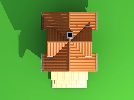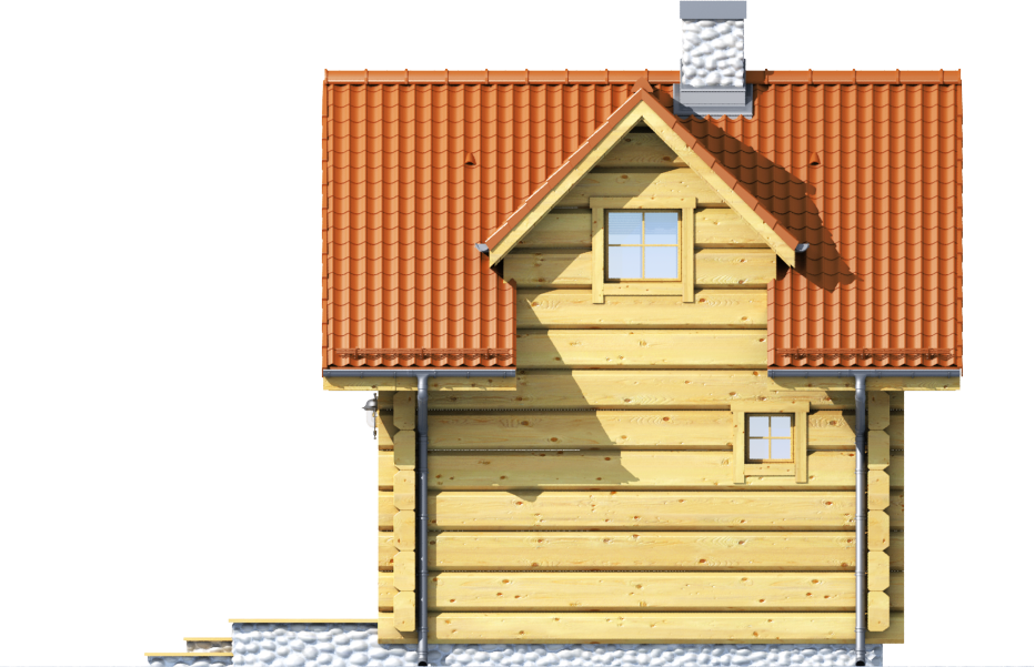 Wys. ścianki kolankowej 0.49 m Ilość drewna na więźbę 1.69 m³. Strop: drewniany. Pokrycie dachu: dachówka ceramiczna. Ściany wewnętrzne: płazy drewniane. Ściany zewnętrzne: płazy drewniane + wełna mineralna + deska.