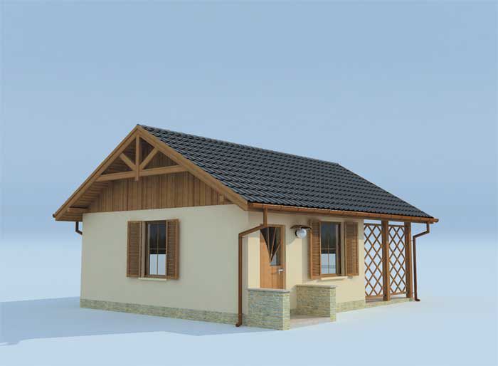 Technologia tradycyjna. Ściany zewnętrzne murowane grubości 30 cm. Ściany wewnętrzne działowe gr. 12 cm. Wszystkie ściany wykonane z pustaków ceramicznych "POROTHERM". Sufit podwieszany z płyt GK na ruszcie stalowym przymocowanym do konstrukcji dachu za pomocą kleszczy. Konstrukcja więźby dachowej drewniana w układzie jętkowym. Pokrycie dachówka ceramiczna. Projekt posiada kominek.