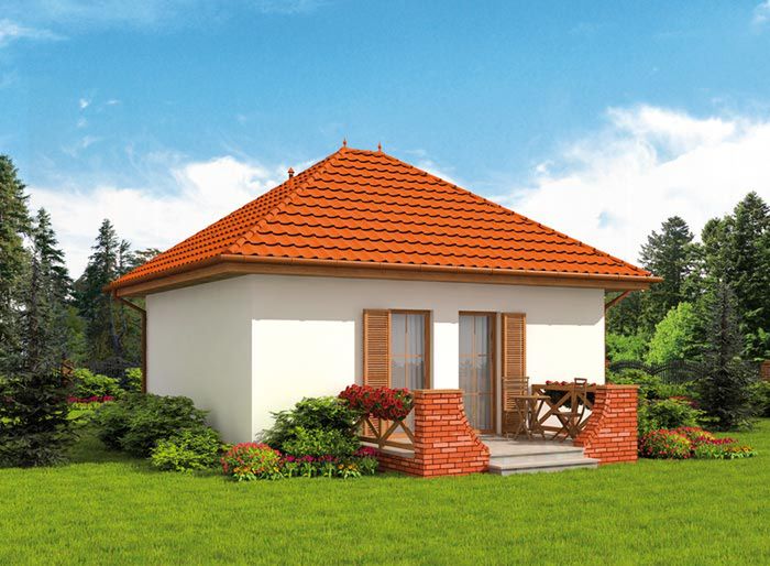 Technologia tradycyjna: - powierzchnia zabudowy - 47,07m2 - powierzchnia schodów zewnętrznych i tarasów -13,61m2- powierzchnia użytkowa- 39,10m2 - powierzchnia całkowita - 60,68m2 - kubatura - 183,57m3 - ściany zewnętrzne murowane grubości 30 cm - ściany wewnętrzne działowe gr. 12 cm - wszystkie ściany wykonane z pustaków ceramicznych "POROTHERM" - sufit podwieszany z płyt GK na ruszcie stalowym przymocowanym do wieżby za pomocą wieszaków - konstrukcja więźby dachowej drewniana w układzie krokwiowo-jętkowym - pokrycie dachówka ceramiczna - projekt posiada kominek
