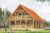 Graficzne opracowanie rzutów poglądowych widocznych na karcie projektu zostało wykonane przez Extradom.pl. Prezentowane przez Extradom.pl wizualizacje wykonane zostały przez autora projektu i należy poczytywać je jedynie za przykład i propozycję wykończenia, wizję architektoniczną autora projektu. Ostateczne wykończenie budynku może nastąpić na wiele sposobów. Szczegółowe rozwiązania zastosowane w oferowanej dokumentacji - w tym również ilość, lokalizacje i wygląd okien, drzwi, kominów - mogą w niewielkim stopniu różnić się od prezentowanej wizualizacji budynku.