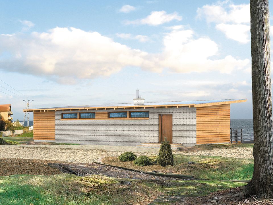 Graficzne opracowanie rzutów poglądowych widocznych na karcie projektu zostało wykonane przez Extradom.pl. Prezentowane przez Extradom.pl wizualizacje wykonane zostały przez autora projektu i należy poczytywać je jedynie za przykład i propozycję wykończenia, wizję architektoniczną autora projektu. Ostateczne wykończenie budynku może nastąpić na wiele sposobów. Szczegółowe rozwiązania zastosowane w oferowanej dokumentacji - w tym również ilość, lokalizacje i wygląd okien, drzwi, kominów - mogą w niewielkim stopniu różnić się od prezentowanej wizualizacji budynku.