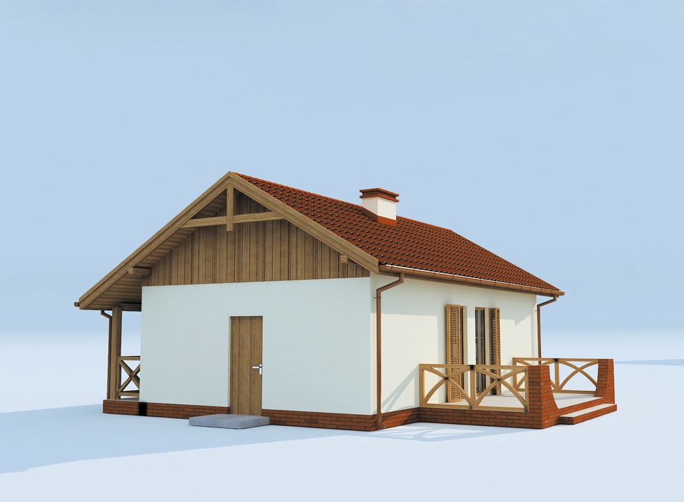Graficzne opracowanie rzutów poglądowych widocznych na karcie projektu zostało wykonane przez Extradom.pl. Prezentowane przez Extradom.pl wizualizacje wykonane zostały przez autora projektu i należy poczytywać je jedynie za przykład i propozycję wykończenia, wizję architektoniczną autora projektu. Ostateczne wykończenie budynku może nastąpić na wiele sposobów. Szczegółowe rozwiązania zastosowane w oferowanej dokumentacji - w tym również ilość, lokalizacje i wygląd okien, drzwi, kominów - mogą w niewielkim stopniu różnić się od prezentowanej wizualizacji budynku.