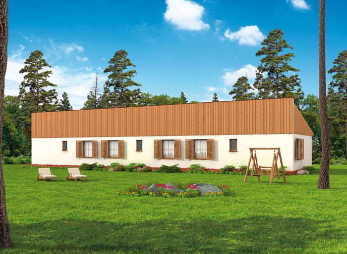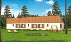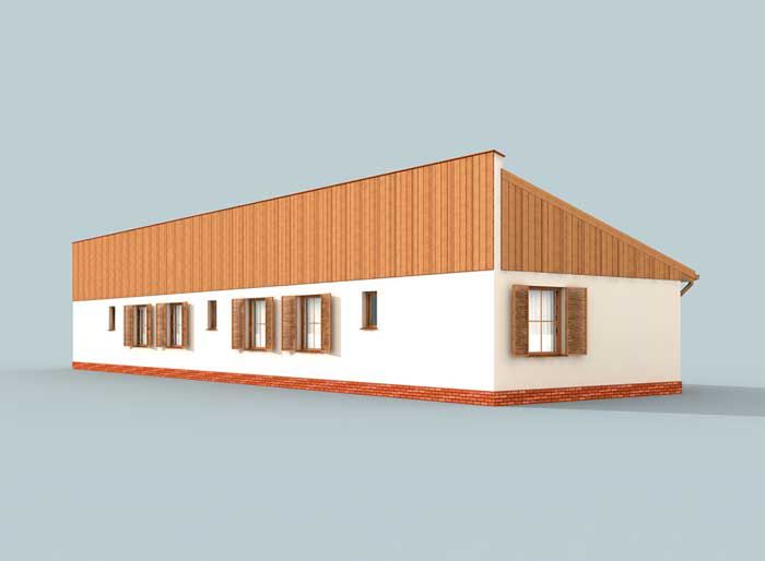 Graficzne opracowanie rzutów poglądowych widocznych na karcie projektu zostało wykonane przez Extradom.pl. Prezentowane przez Extradom.pl wizualizacje wykonane zostały przez autora projektu i należy poczytywać je jedynie za przykład i propozycję wykończenia, wizję architektoniczną autora projektu. Ostateczne wykończenie budynku może nastąpić na wiele sposobów. Szczegółowe rozwiązania zastosowane w oferowanej dokumentacji - w tym również ilość, lokalizacje i wygląd okien, drzwi, kominów - mogą w niewielkim stopniu różnić się od prezentowanej wizualizacji budynku.