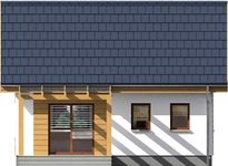 Graficzne opracowanie rzutów poglądowych widocznych na karcie projektu zostało wykonane przez Extradom.pl. Prezentowane przez Extradom.pl wizualizacje wykonane zostały przez autora projektu i należy poczytywać je jedynie za przykład i propozycję wykończenia, wizję architektoniczną autora projektu. Ostateczne wykończenie budynku może nastąpić na wiele sposobów. Szczegółowe rozwiązania zastosowane w oferowanej dokumentacji - w tym również ilość, lokalizacje i wygląd okien, drzwi, kominów - mogą w niewielkim stopniu różnić się od prezentowanej wizualizacji budynku.