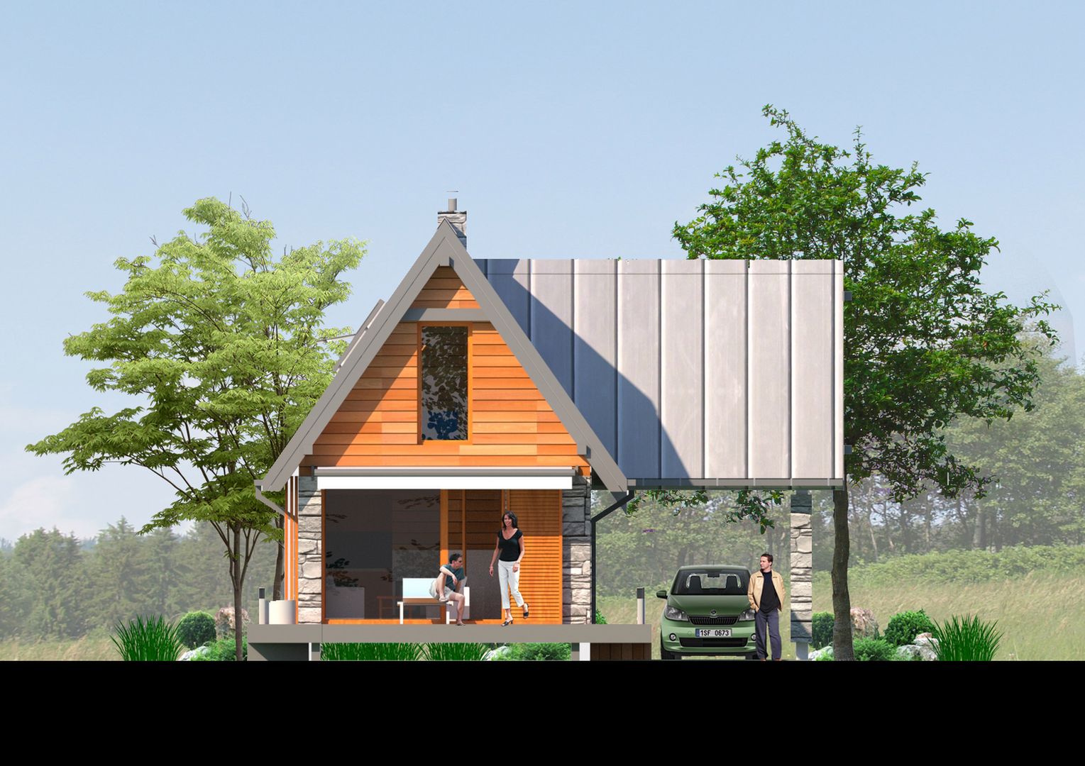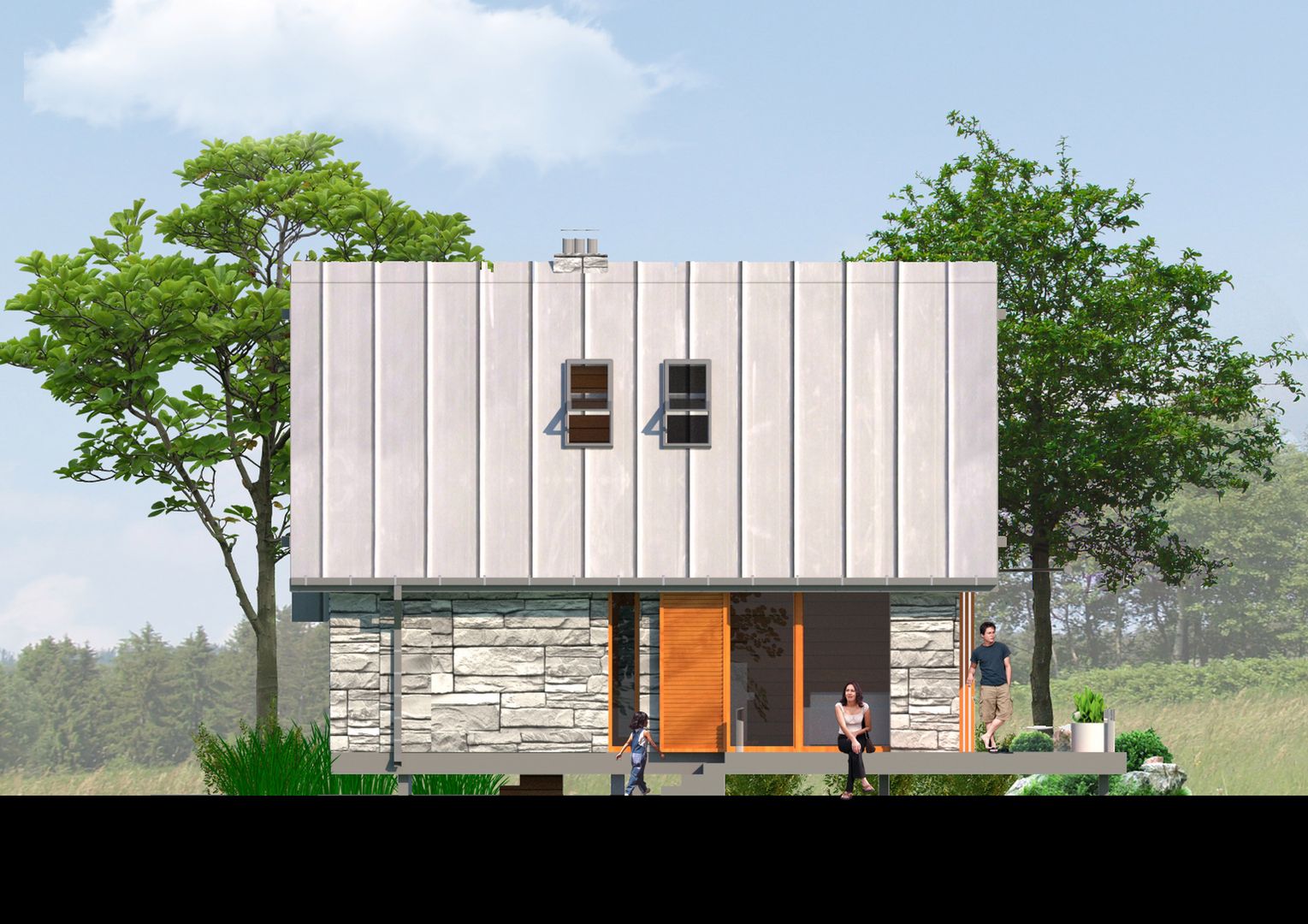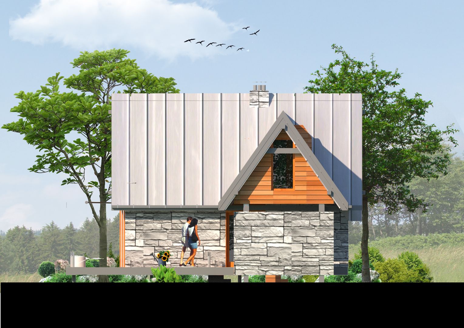 Graficzne opracowanie rzutów poglądowych widocznych na karcie projektu zostało wykonane przez Extradom.pl. Prezentowane przez Extradom.pl wizualizacje wykonane zostały przez autora projektu i należy poczytywać je jedynie za przykład i propozycję wykończenia, wizję architektoniczną autora projektu. Ostateczne wykończenie budynku może nastąpić na wiele sposobów. Szczegółowe rozwiązania zastosowane w oferowanej dokumentacji - w tym również ilość, lokalizacje i wygląd okien, drzwi, kominów - mogą w niewielkim stopniu różnić się od prezentowanej wizualizacji budynku.