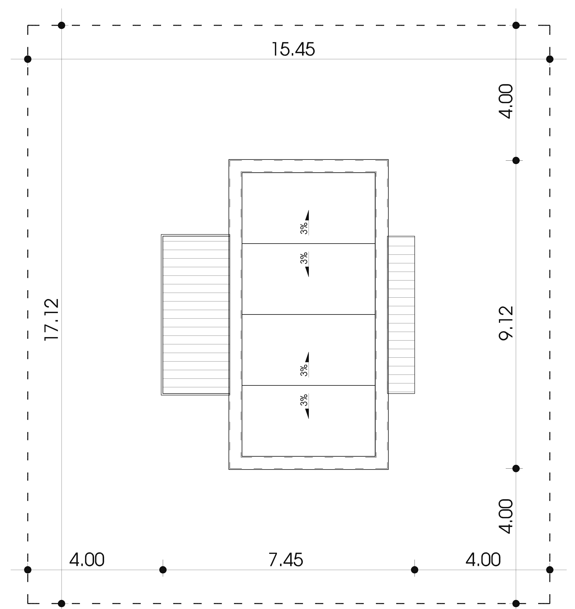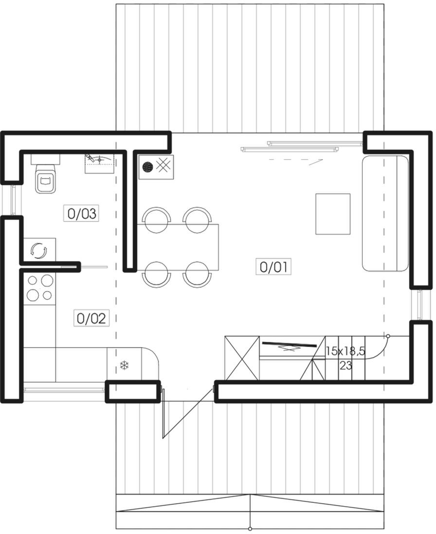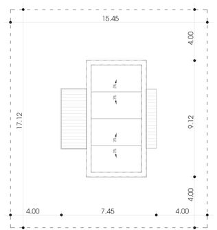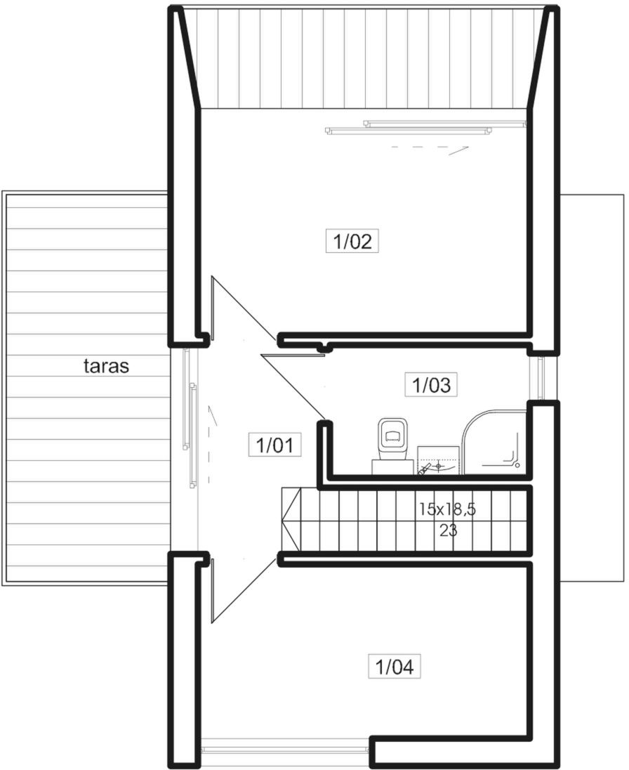 Graficzne opracowanie rzutów poglądowych widocznych na karcie projektu zostało wykonane przez Extradom.pl. Prezentowane przez Extradom.pl wizualizacje wykonane zostały przez autora projektu i należy poczytywać je jedynie za przykład i propozycję wykończenia, wizję architektoniczną autora projektu. Ostateczne wykończenie budynku może nastąpić na wiele sposobów. Szczegółowe rozwiązania zastosowane w oferowanej dokumentacji - w tym również ilość, lokalizacje i wygląd okien, drzwi, kominów - mogą w niewielkim stopniu różnić się od prezentowanej wizualizacji budynku.