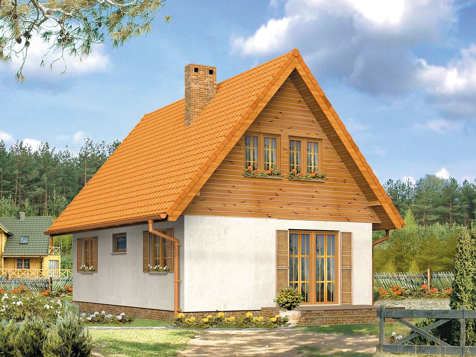 Znalezienie odpowiedniego projektu zajęło mi 3 lata. Przez ten czas oglądnąłem ich setki, a spośród nich wybrałem projekt domu Motylek BSA1177, który nie tylko spodobał mi się wizualnie, ale także był odpowiedni pod kątem technologi budowy. Konstrukcję tego budynku tworzy beton, ale również duża ilość drewna, a z uwagi na to iż posiadam własny las tego materiału mam pod dostatkiem.Budowa naszego domu przebiegła bezproblemowo i trwała 3 lata. Ławy fundamentowe zostały zalane typowym betonem z gruszki o klasie B-20. Fundamenty powstały za pomocą bloczków betonowych, a następnie pokryto je warstwą izolacyjną. Wszystkie ściany zewnętrzne (łącznie ze szczytowymi) wymurowaliśmy z pustaków Suporex. Strop, zgodnie z projektem zrobiliśmy drewniany, a całe poddasze również wykończyliśmy drewnem. Do postawienia ścianek działowych na górnej kondygnacji zamiast płyt G-K użyliśmy desek szalowych. Konstrukcję dachu pokryliśmy papą, na której następnie położyliśmy blachodachówkę. Nasz dom stoi na wsi w środku lasu. Aby go unowocześnić i uczynić życie w nim bardziej komfortowe, samodzielnie wykonałem wszelkie instalacje związane np. z doprowadzeniem wody, podłączeniem internetu czy telewizji satelitarnej.Do ogrzewania domu wykorzystujemy usytuowany w salonie kominek z wymuszonym obiegiem powietrza. Dodatkowo w części dziennej, korytarzu i łazience mamy ogrzewanie elektryczne. Kominek z rozprowadzeniem ciepła sprawdza się doskonale i nawet przy 20 stopniowych mrozach jest w stanie ogrzać wszystkie pomieszczenia. Nie narzekam również na koszty takiego rozwiązania, gdyż na cały sezon grzewczy starcza nam 10-12m3 drewna dębowego lub brzozowego.Ze względu na położenie budynku w lesie oraz zmianę jego przeznaczenia z letniskowego na całoroczny, musieliśmy wprowadzić pewne modyfikacje do projektu domu Motylek BSA1177. W miejscu naszego zamieszkania nie ma wodociągu i kanalizacji, więc musiałem wygospodarować w domu miejsce na wstawienie hydroforu. Udało mi się to zrobić kosztem fragmentu łazienki oraz wnęki na szafę przewidzianej w najmniejszym pokoju. Dodatkowo cały budynek został poszerzony o 0,5m. Nowo powstałe pomieszczenie, w którym znajduje się hydrofor pełni jednocześnie funkcję spiżarki. Na poddaszu brakowało nam małej łazienki, więc zrobiłem ją pomiędzy dwoma sypialniami na przeciwko klatki schodowej. Co prawda, z racji skosów nie mogłem wstawić tam wanny, jednak umywalka i toaleta zmieściły się idealnie.Zdecydowałem się również na powiększenie tarasu, który w projekcie jest dość mały. Pociągnąłem go na całej szerokości domu i w naszym przypadku jego wymiary wynoszą 3x6m. Miejsce do wypoczynku na świeżym powietrzu postanowiłem zacienić. W tym celu zrobiłem osobny daszek nad tarasem przykręcając belki do pustaków. Muszę przyznać, że prezentuje się to bardzo dobrze. Aby uchronić drzwi frontowe przed warunkami atmosferycznym, wykonaliśmy przed wejściem do domu przeszklony ganek z elementów drzwi i okien PCV. Taka konstrukcja pełni dwojaką rolę. W zimie jest świetnym izolatorem i zmniejsza napływ mroźnego powietrza do części mieszkalnej, zaś w lecie ,gdy nie ogrzewa się domu, a rano jest w nim jeszcze chłodno, szyby przedsionka przyciągają ciepło słoneczne. Front naszego domu znajduje się na południu, więc pomieszczenia momentalnie się nagrzewają. Oprócz tego, że ganek jest bardzo funkcjonalny to również dodaje wiele uroku całemu budynkowi.Na stałe mieszkam tylko z moją żoną, ale gdy przyjeżdżają do nas dzieci i wnuczki nie ma problemu, aby wszystkich przenocować. Czasami potrafi być nas nawet 15 osób i wszyscy doskonale się mieścimy. To właśnie taki niepozorny domek: niby mały, a jednak duży :-)Z wyboru projektu domu parterowego z poddaszem użytkowym Motylek BSA1177 jesteśmy bardzo zadowoleni. Wszyscy odwiedzający nas gości bardzo chwalą ustawność i funkcjonalność naszego domu, a co najważniejsze nam podoba się w nim dosłownie wszystko. Polecam i pozdrawiam.