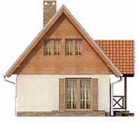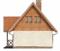 Ściany: 2-warstwowe - bloczki z betonu komórkowego + styropian. Stropy: na belkach drewnianych. Dach: dachówka, kąt nachylenia 50°. Ogrzewanie: kominkowe.