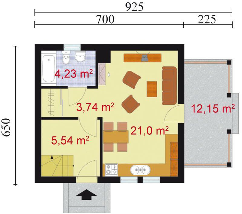 Graficzne opracowanie rzutów poglądowych widocznych na karcie projektu zostało wykonane przez Extradom.pl. Prezentowane przez Extradom.pl wizualizacje wykonane zostały przez autora projektu i należy poczytywać je jedynie za przykład i propozycję wykończenia, wizję architektoniczną autora projektu. Ostateczne wykończenie budynku może nastąpić na wiele sposobów. Szczegółowe rozwiązania zastosowane w oferowanej dokumentacji - w tym również ilość, lokalizacje i wygląd okien, drzwi, kominów - mogą w niewielkim stopniu różnić się od prezentowanej wizualizacji budynku.