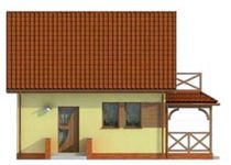 Technologia tradycyjna: - ściany zewnętrzne murowane gr. 30 cm - ściany wewnętrzne działowe gr. 12 cm - wszystkie ściany wykonane z pustaków ceramicznych "POROTHERM" - strop gęstożebrowy "POROTHERM" o gr 23 cm. - konstrukcja więźby dachowej drewniana w układzie krokwiowo-jętkowym - pokrycie dachówka ceramiczna - istnieje możliwość adaptacji obiektu na budynek całoroczny - w przypadku wersji całorocznej docieplenie warstwą styropianu gr. 10 cm. - instalacja grzewcza w wersji całorocznej : kocioł gazowy zlokalizowany w łazience Technologia szkieletu drewnianego: - ściany zewnętrzne : słupki 4x15 rozstawione max. co 40cm obite zewnątrz płytą OSB 3 1,8cm , a wewnątrz płytą GK 1,25cm , przestrzeń pomiędzy słupkami wypełniona wełną mineralną 15cm - ściana wewnętrzna działowa : słupki 4x9 rozstawione max. co 40cm obite z dwóch stron płytą GK 1,25cm przestrzeń pomiędzy słupkami wypełniona wełną mineralną 9cm - strop drewniany o konstrukcji belkowej - konstrukcja więźby dachowej drewniana w układzie krokwiowo-kleszczowym - pokrycie dachówka ceramiczna - docieplenie styropianem ryflowanym o gr. 5cm.