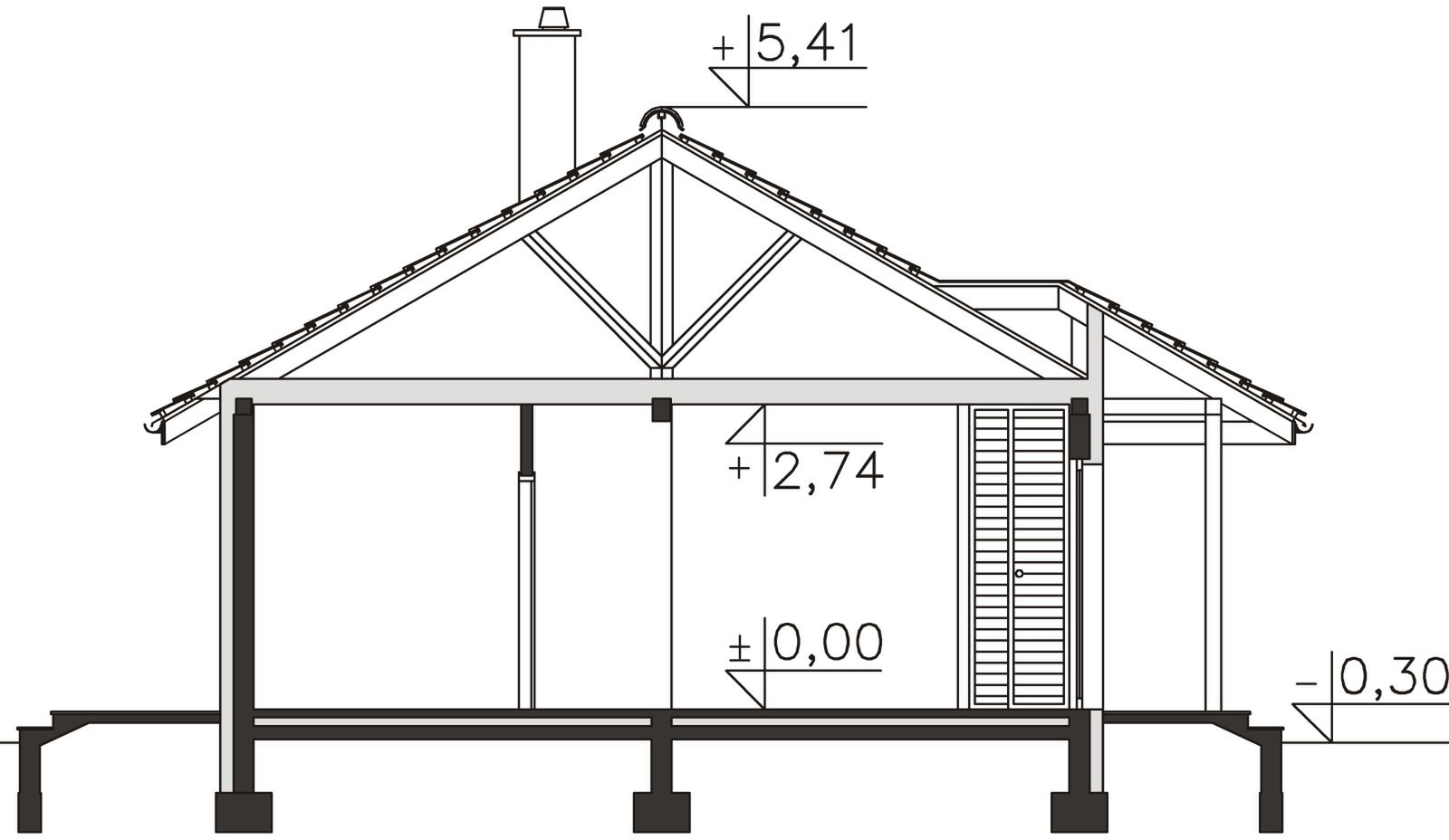 Fundamenty - rozwiązanie o podwyższonej izolacji termicznej. Ściany zewnętrzne - Bloczek silikatowy 18 cm + styropian 12 cm. Dach - tradycyjna więźba ciesielska. Wentylacja - grawitacyjna.