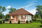 Graficzne opracowanie rzutów poglądowych widocznych na karcie projektu zostało wykonane przez Extradom.pl. Prezentowane przez Extradom.pl wizualizacje wykonane zostały przez autora projektu i należy poczytywać je jedynie za przykład i propozycję wykończenia, wizję architektoniczną autora projektu. Ostateczne wykończenie budynku może nastąpić na wiele sposobów. Szczegółowe rozwiązania zastosowane w oferowanej dokumentacji - w tym również ilość, lokalizacje i wygląd okien, drzwi, kominów - mogą w niewielkim stopniu różnić się od prezentowanej wizualizacji budynku.