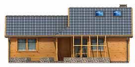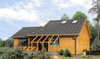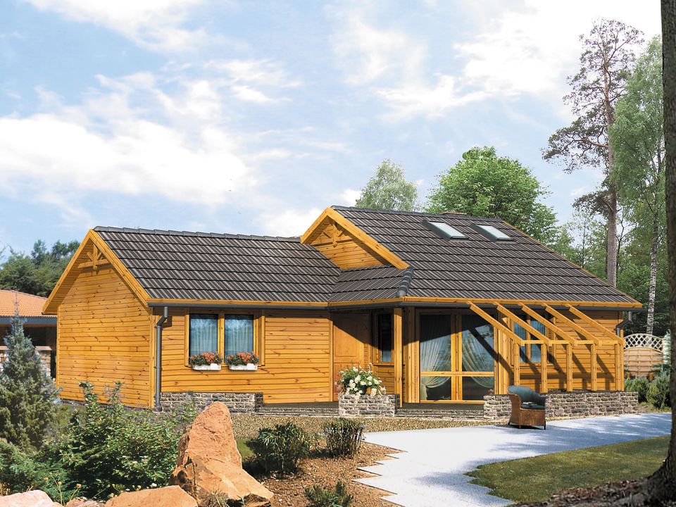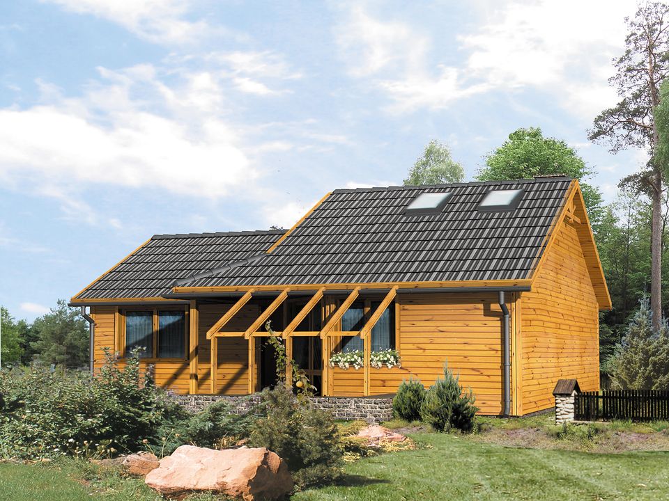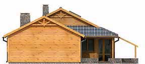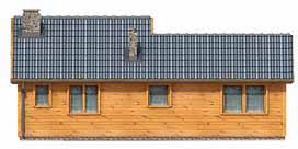 Ściany: bal drewniany + wełna mineralna. Stropy: na belkach drewnianych. Dach: dachówka bitumiczna, kąt nachylenia 26°. Ogrzewanie: elektryczne.