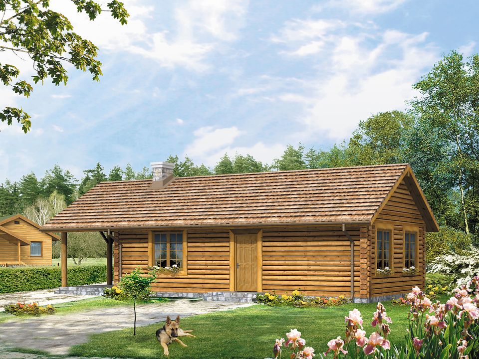 Ściany: bal drewniany + wełna mineralna. Stropy: na belkach drewnianych. Dach: gont drewniany, kąt nachylenia 30°. Ogrzewanie: kominkowe.